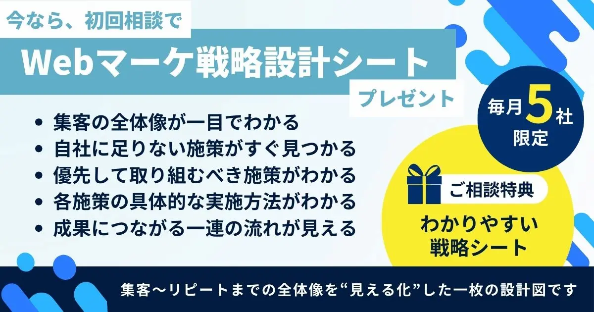 「Webマーケ戦略設計シート」は、集客〜リピートまでの全体像を“見える化”した一枚の設計図。